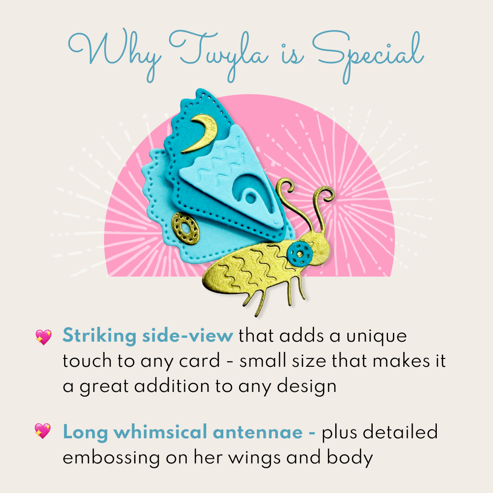 This set is ideal for layering and embellishing, allowing you to build dimension with wings, body details, and decorative elements. Whether you’re accenting a card front, enhancing a scrapbook page, or adding a unique touch to mixed-media projects, Twyla makes it easy to let your creativity take flight.