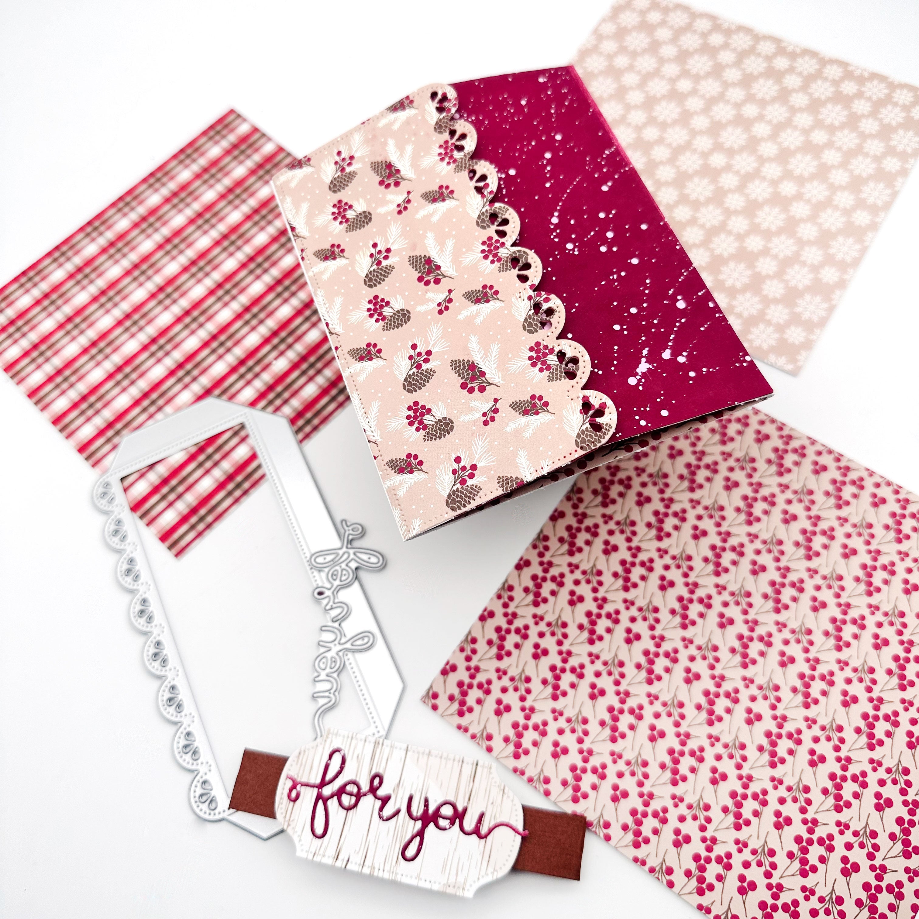 With delicate embossed dots and floral cutouts, the decorative scalloped edge adds a charming finish, while the roomy front panel leaves space for customizing with stencils, word dies, and more.