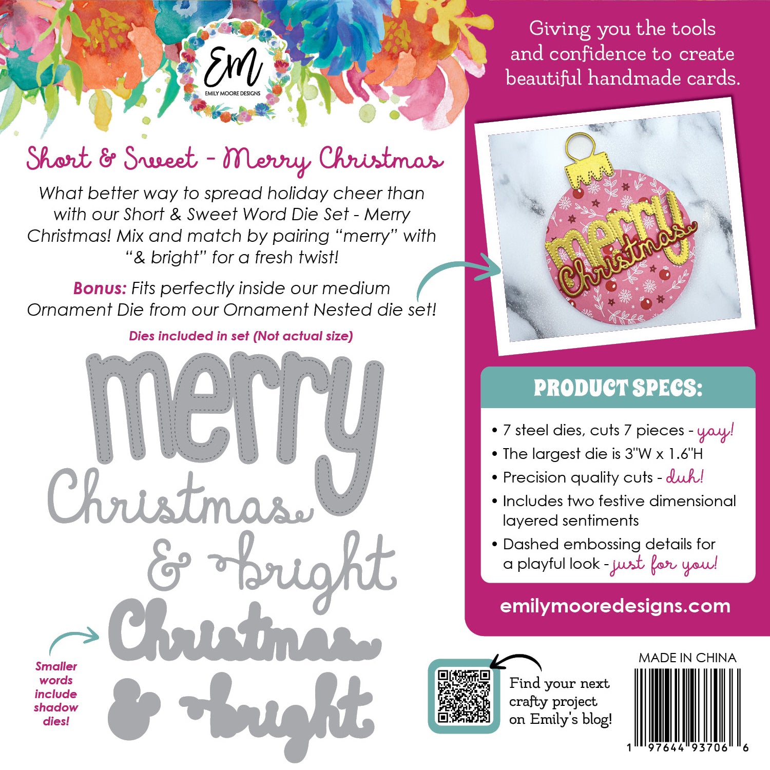 The layered “merry,” “Christmas,” and “& bright” allow you to express warmth in your own creative style — whether clean and simple or colorful and dimensional. Perfect for quick makes and thoughtful one-of-a-kind designs. And if you’re feeling festive, it fits beautifully inside our medium Ornament Nested Die (sold separately).