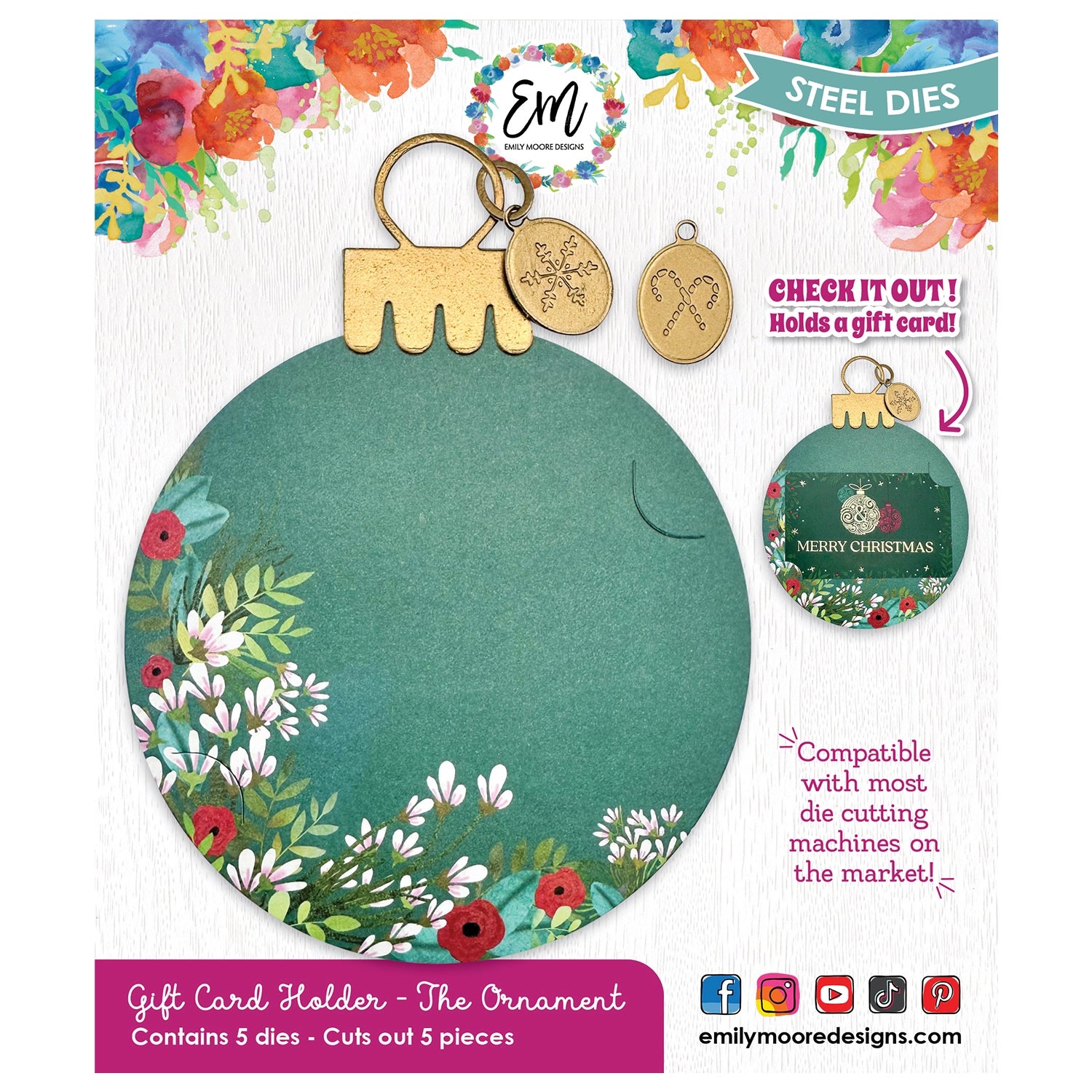 - Features: Gift card holder die in the shape of a Christmas ornament with festive decorative add-ons